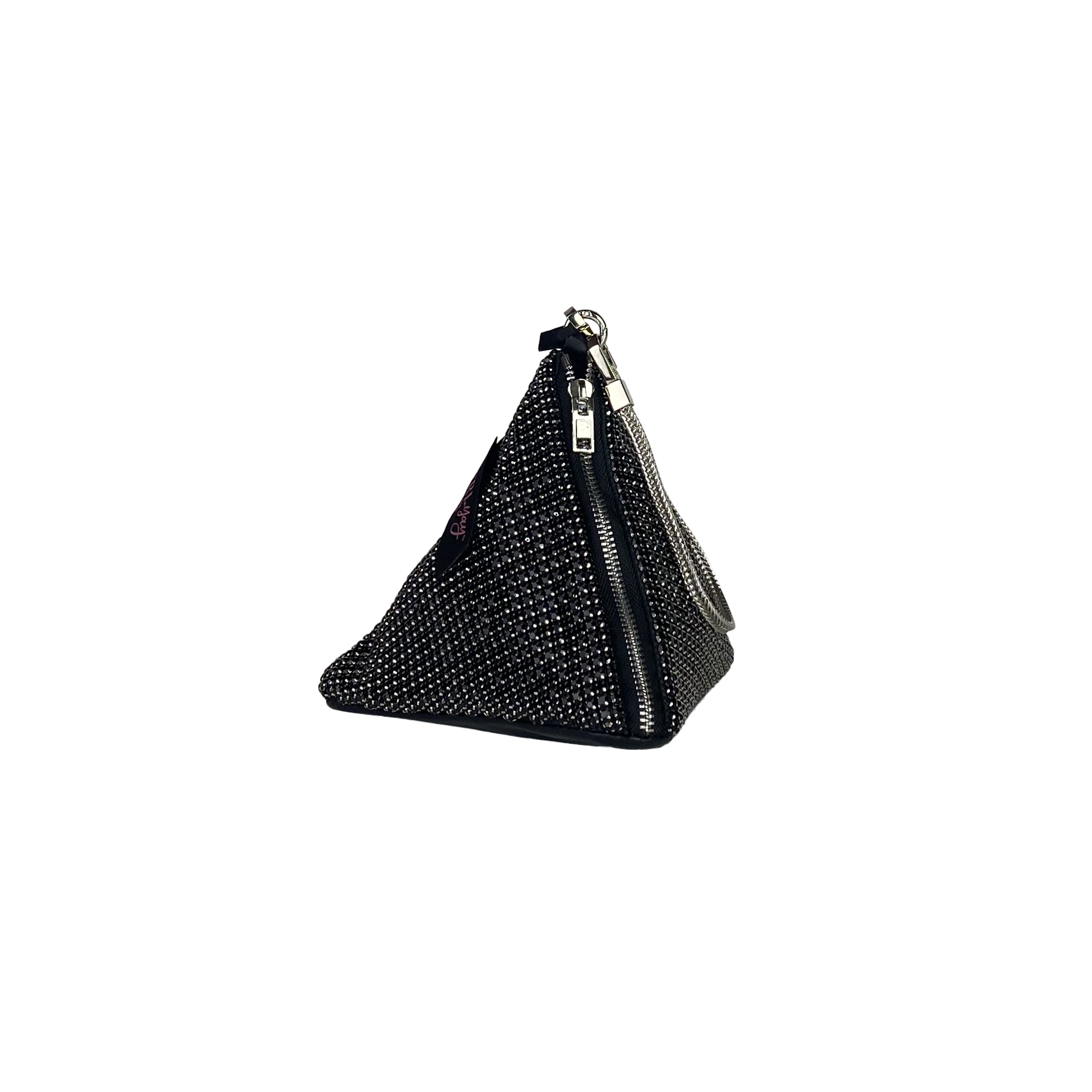 La sua particolare forma piramidale dona carattere e unicità, rendendola perfetta per aggiungere un tocco glamour a qualsiasi outfit. Dotata di una chiusura con zip in metallo, dettagli lucidi e un pratico laccetto superiore, questa borsa è ideale per custodire con stile i tuoi essenziali durante eventi, serate o occasioni speciali. Compatta ma capiente, combina estetica e funzionalità in un design contemporaneo.