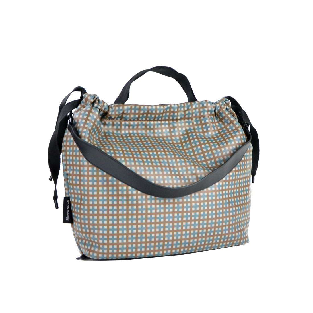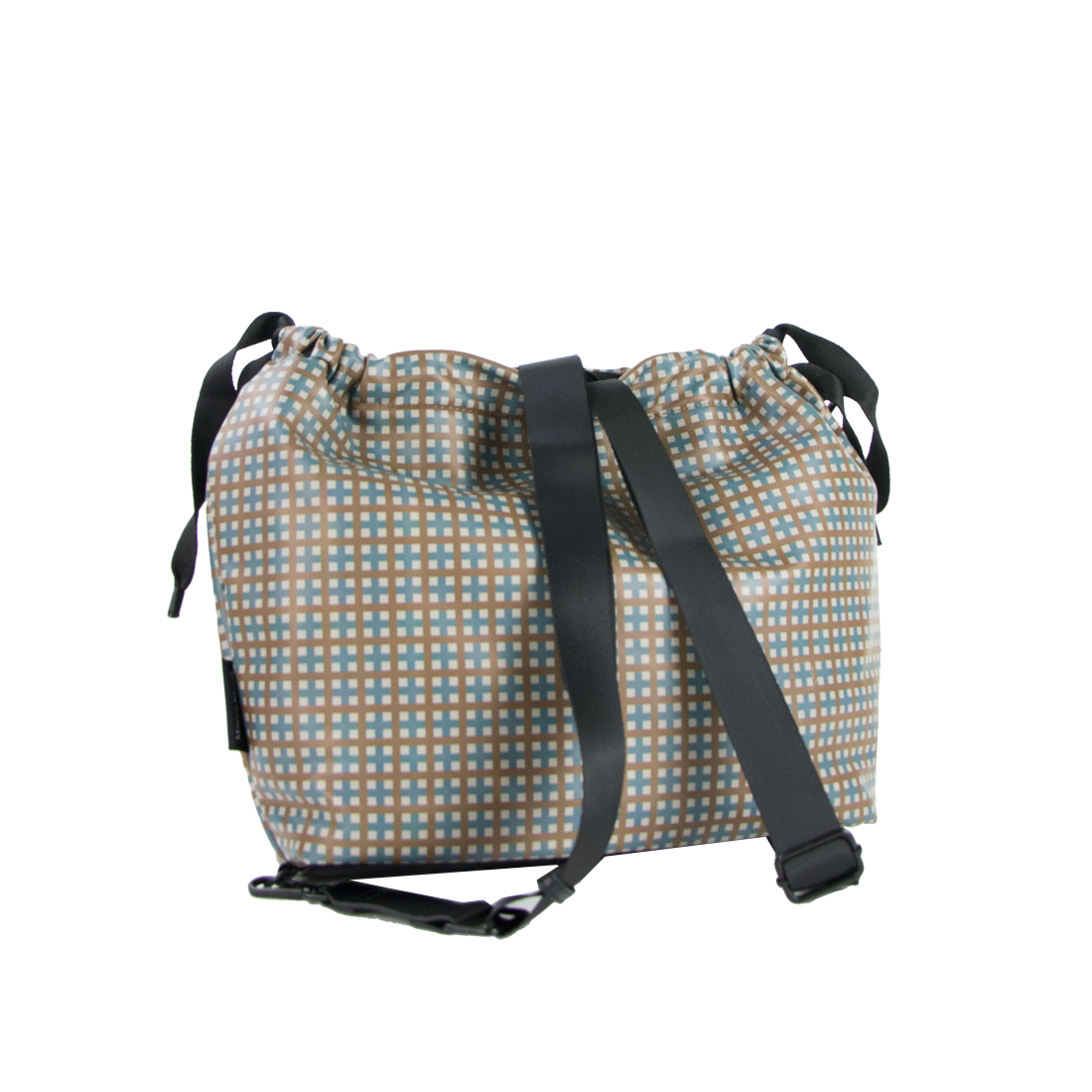 - MANO: asas obtenidas tirando hacia arriba de las cintas del cordón en el centro del bolso (recomendamos hacer un nudo uniendo las dos cintas a los lados del bolso antes de realizar esta operación para evitar que las cintas se desprendan)
